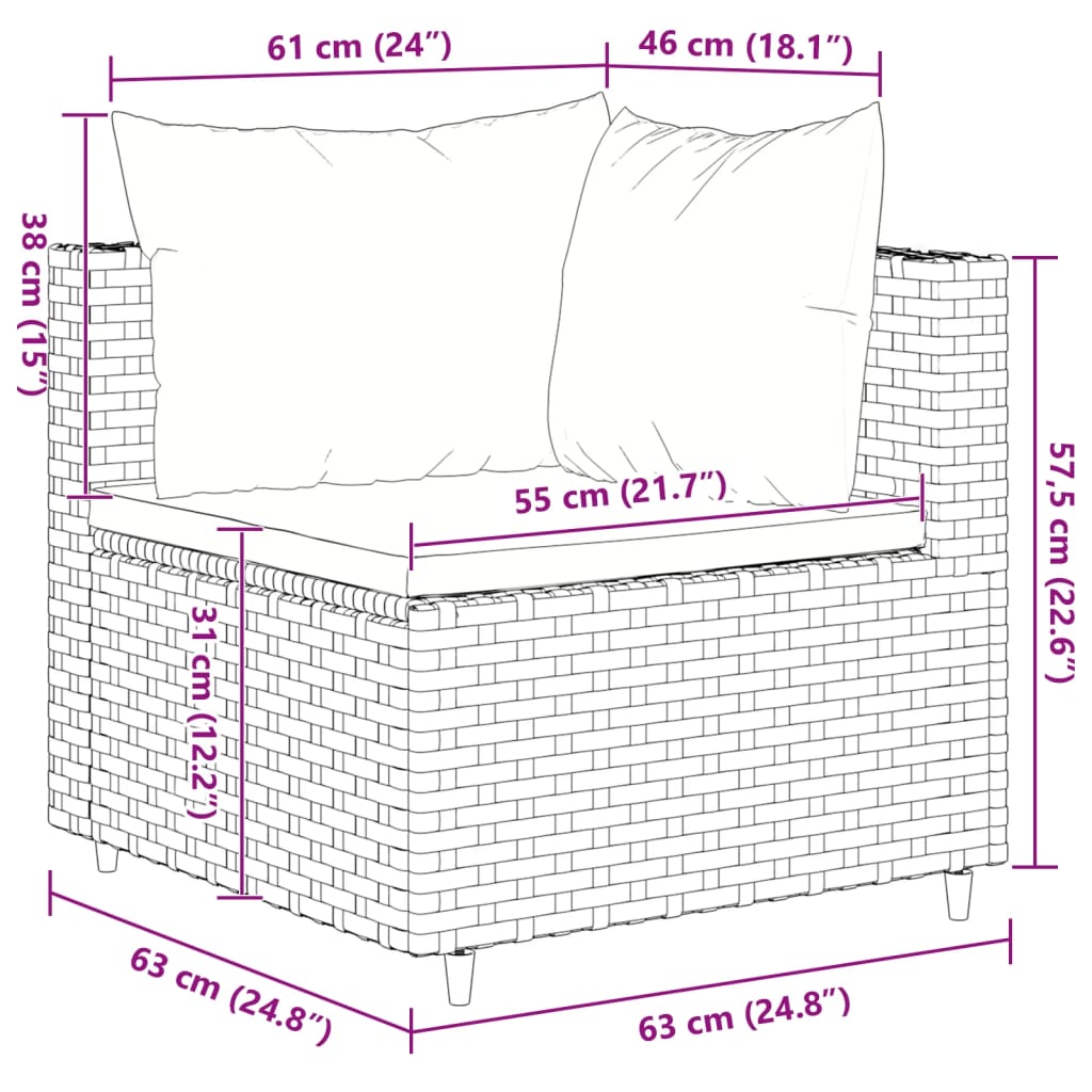 10-tlg. Garten-Lounge-Set mit Kissen Grau Poly Rattan