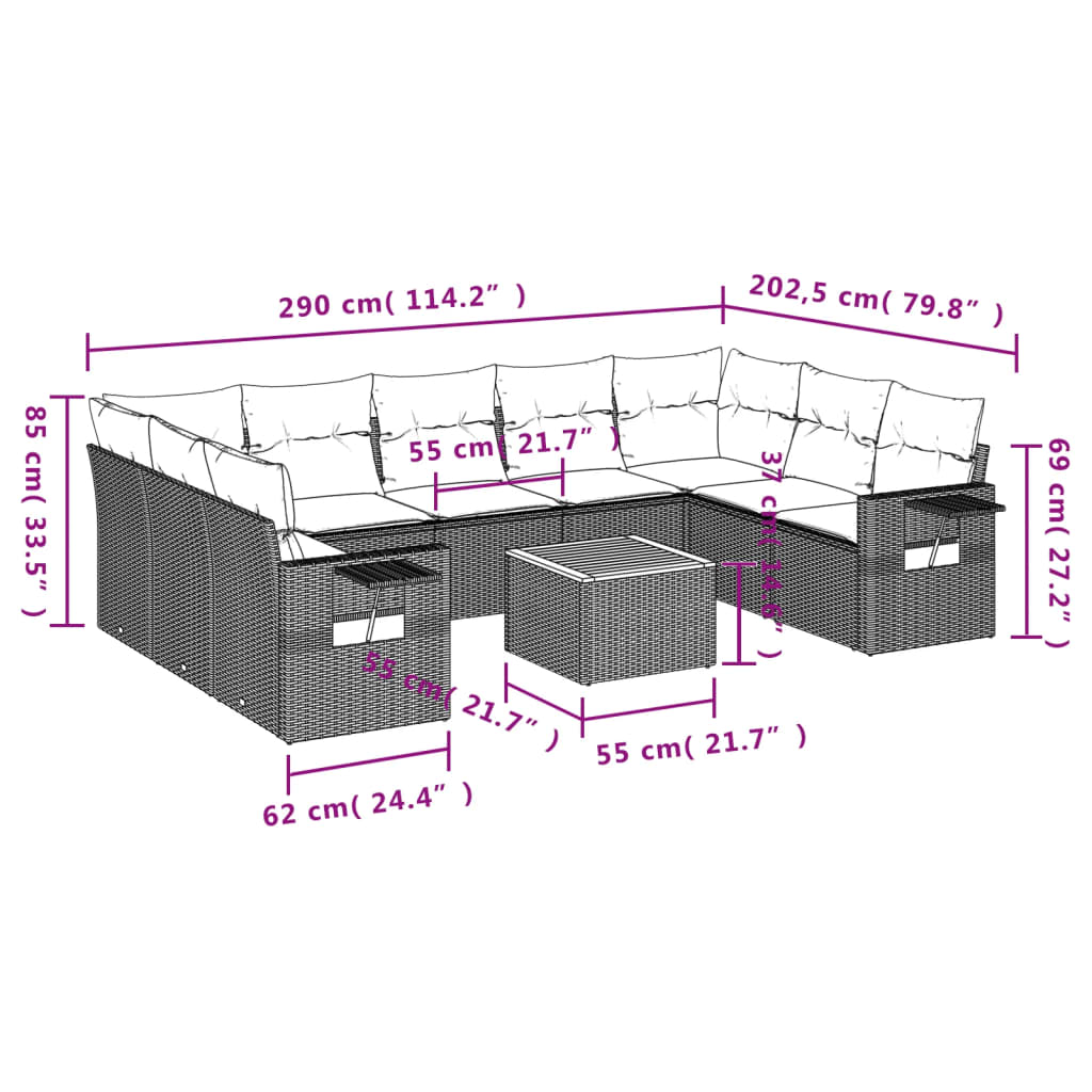 10-tlg. Garten-Sofagarnitur mit Kissen Grau Poly Rattan