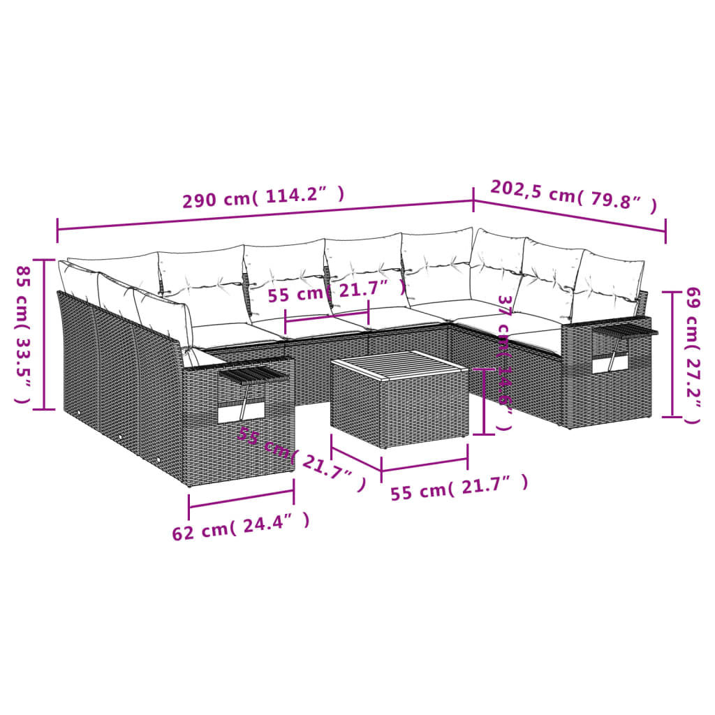 10-tlg. Garten-Sofagarnitur mit Kissen Schwarz Poly Rattan