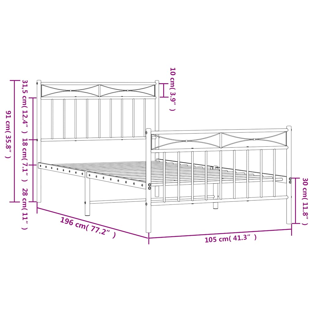 Bettgestell mit Kopf- und Fußteil Metall Schwarz 100x190 cm