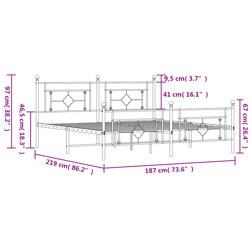 Bettgestell mit Kopf- und Fußteil Metall Schwarz 183x213 cm